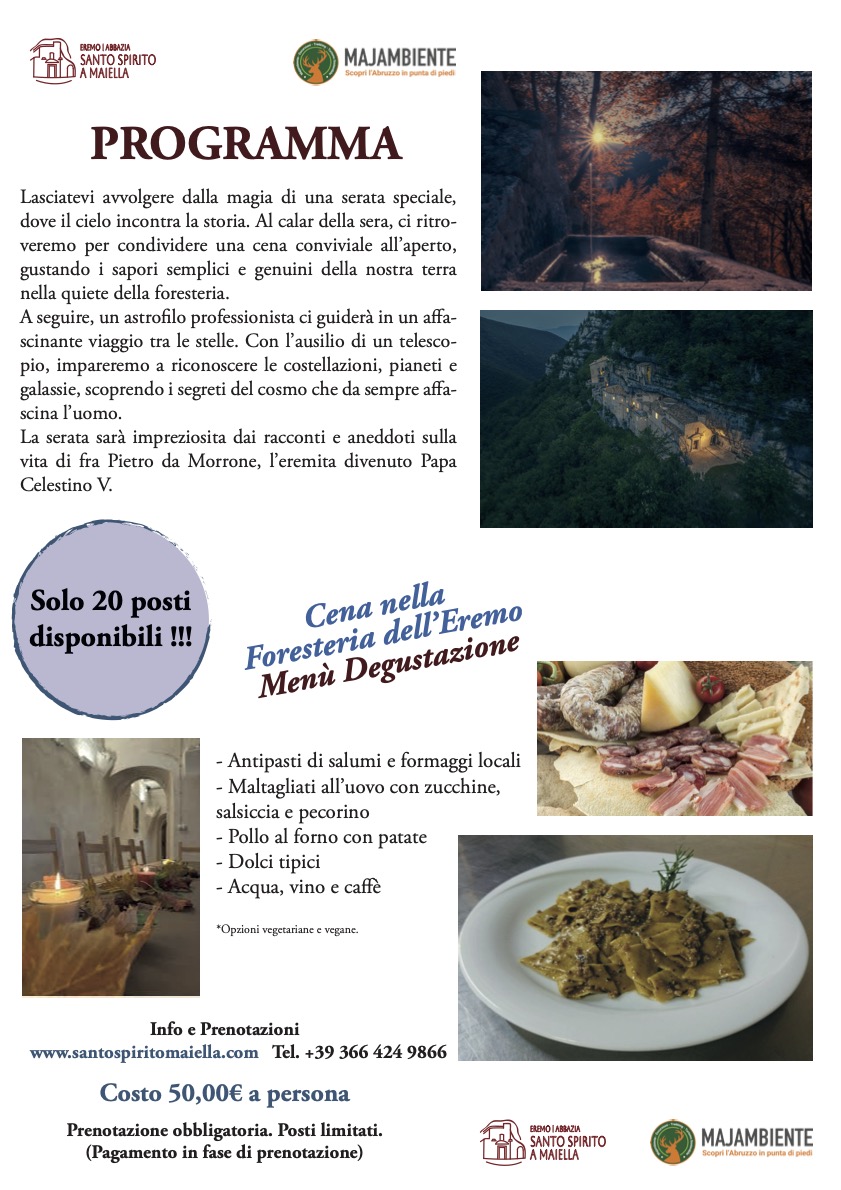 Ti ricordiamo che è possibile anche dormire presso l'eremo. Scopri la disponibilità delle camere della foresteria.